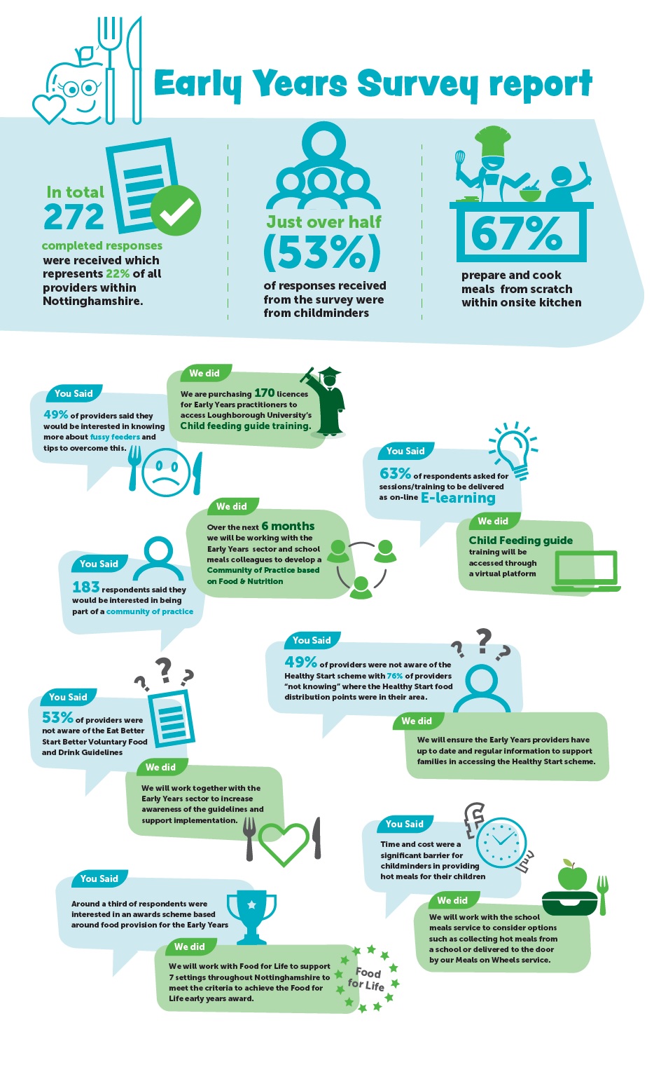 Local childcare and nursery providers told us that they work hard to provide healthy meals and snacks to the children they look after, and they are keen to be able to provide information and advise parents and carers on healthy eating.